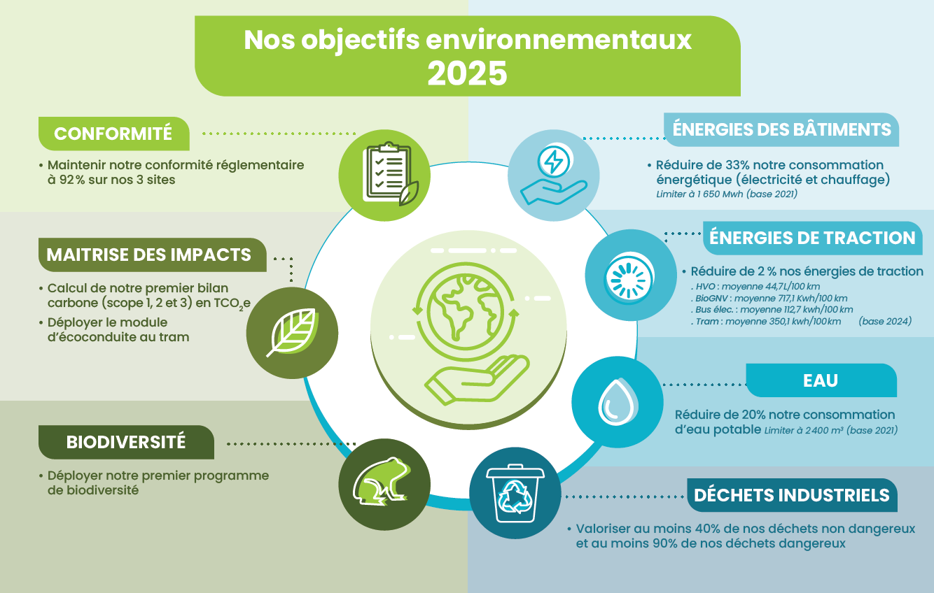 Les objectifs environnementaux de cette année sont basés sur les résultats obtenus en 2024, le suivi de notre système de management environnemental, ainsi que sur les nouvelles obligations légales.