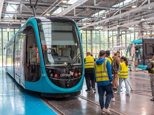 Mercredi 3 juillet 2024, Keolis Besançon Mobilités a eu le plaisir d’accueillir des jeunes accompagnés par Adrien Lugagne, référent mobilité à la Mission Locale, pour une visite du Centre de Maintenance du tramway Ginko.